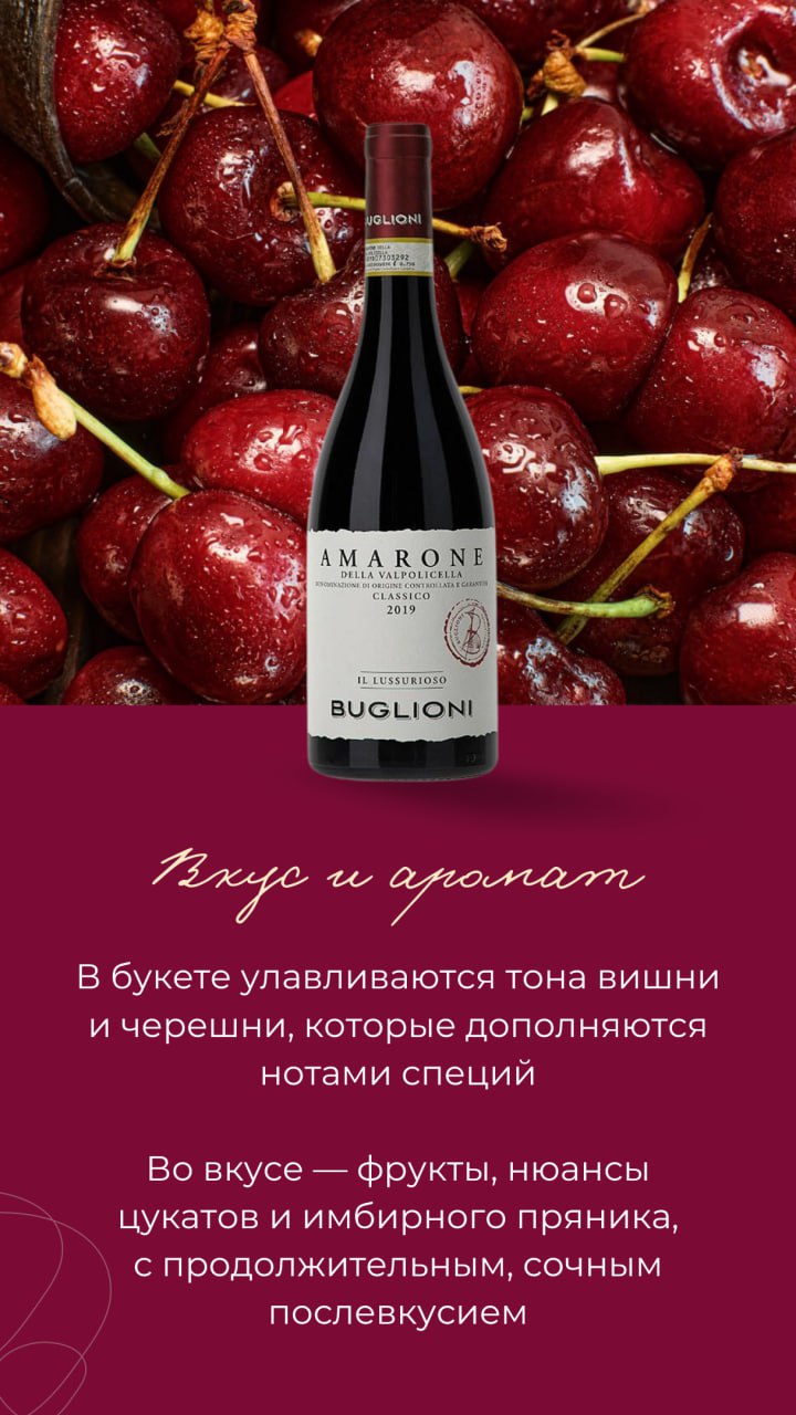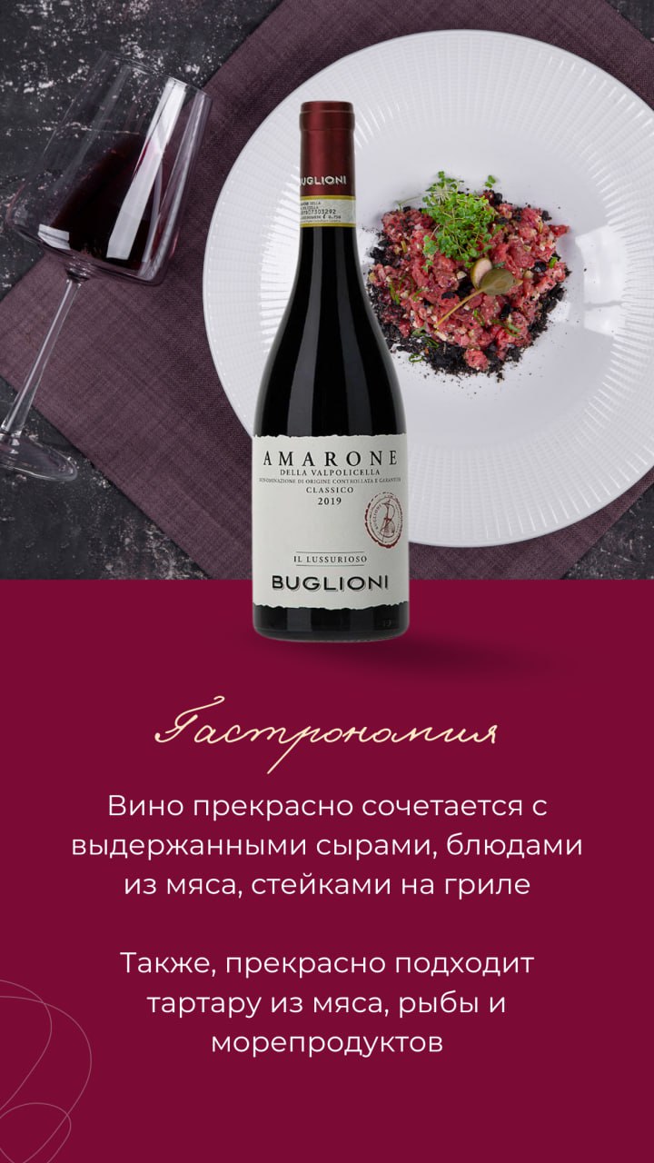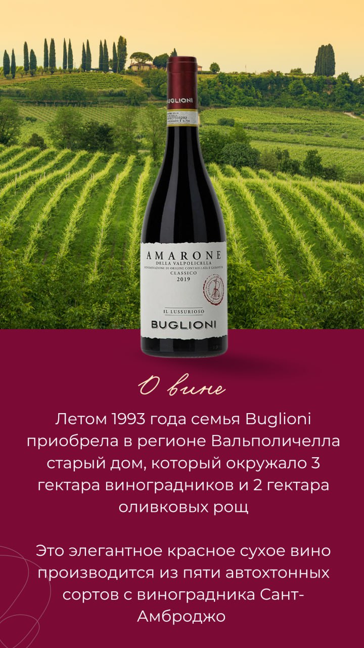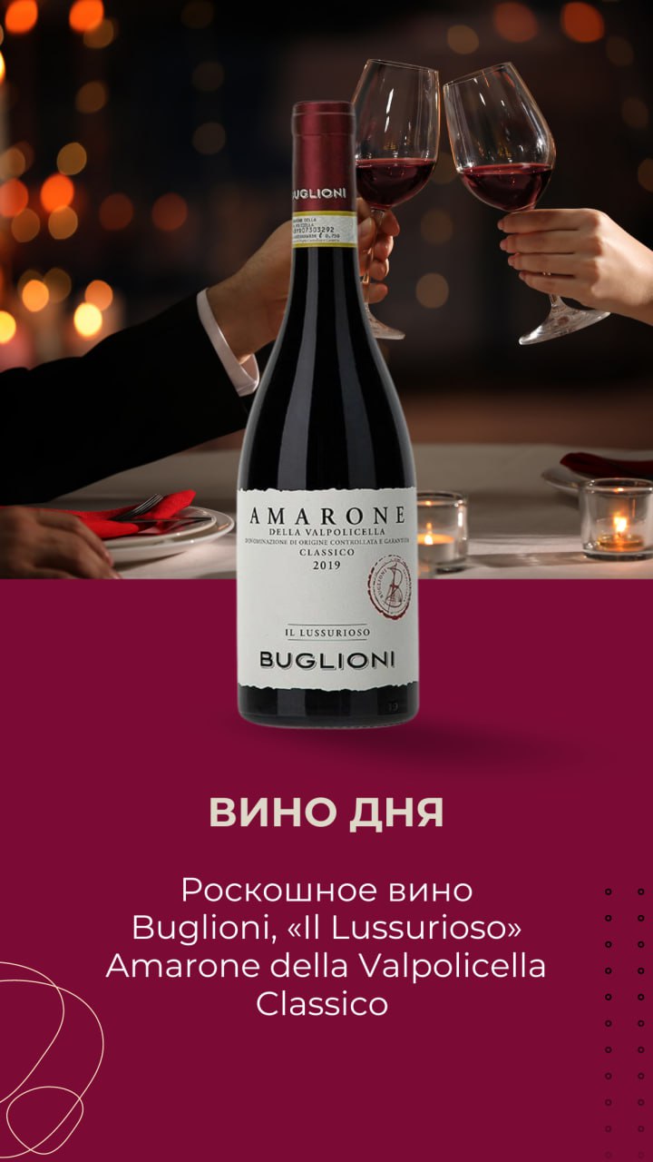 Элегантная классика Buglioni, «Il Lussurioso» Amarone della Valpolicella Classico из Венето сегодня на обзоре в нашей рубрике «Вино дня».