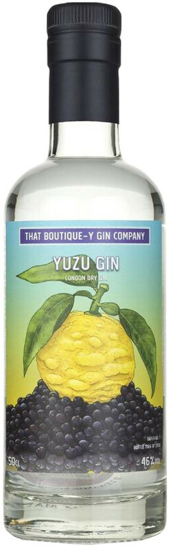 Этикетка выполнена в характерном стиле That Boutique-Y Gin Company — красочная и насыщенная деталями. На ней изображены фрукты юдзу, подчёркивающие ключевой ингредиент напитка, и добавляющие яркости общей концепции. Такой дизайн делает бутылку стильным и запоминающимся выбором.