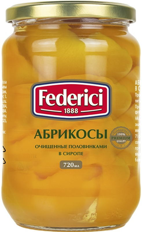 Абрикосы FEDERICI очищенные половинками в сиропе 720мл