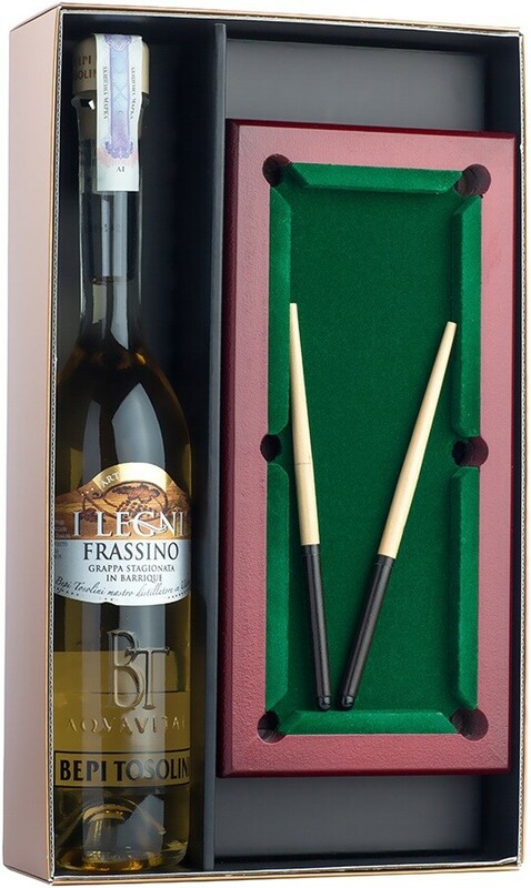 Граппа Bepi Tosolini, " I Legni Frassino", gift set "Biliardo" in wooden box, 0.5 л