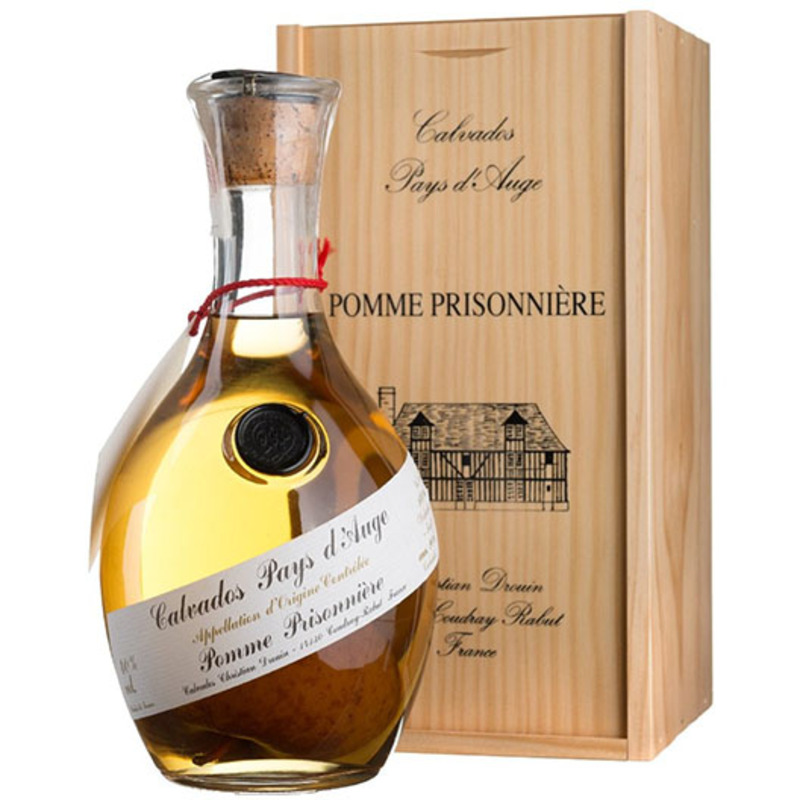 Calvados Pays d'Auge Pomme Prisonnière — уникальный французский напиток, сочетающий в себе традиции региона Пэй д’Ож и оригинальное исполнение. Название переводится как «пленённое яблоко», и действительно, внутри бутылки заключено цельное яблоко, выросшее прямо внутри стеклянного сосуда, что придаёт кальвадосу особый характер и визуальную изюминку.