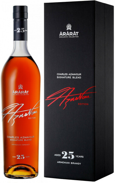 Ararat Charles Aznavour Авторский Бленд — это уникальный напиток, созданный в честь великого шансонье Шарля Азнавура. Выдержка в течение 25 лет придаёт этому алкоголю исключительную глубину и многослойность вкусовых оттенков. Аромат раскрывается сложными нотами сушёных фруктов, специй и дуба, что придаёт ему особую изысканность. Мягкий и насыщенный вкус с нотками мёда, карамели и лёгкой горчинкой дуба оставляет долгое послевкусие, подчёркивающее благородство и высокое качество напитка.