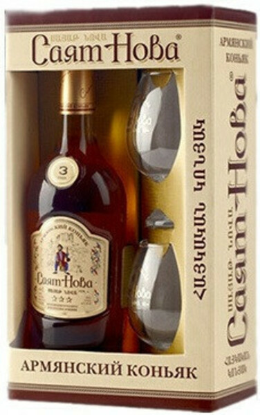 Коньяк "Саят Нова" 3-летний, в подарочной коробке с двумя бокалами, 0.5 л
