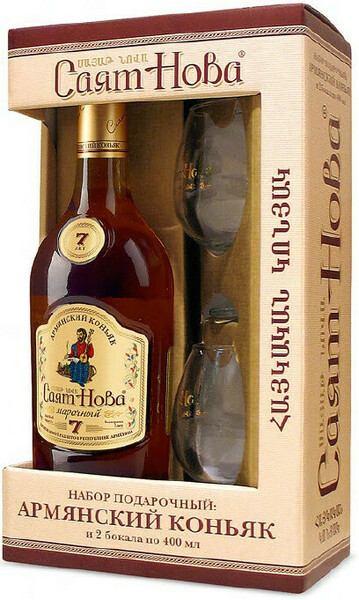 Коньяк "Саят Нова" 7-летний, в подарочной коробке с двумя бокалами, 0.5 л