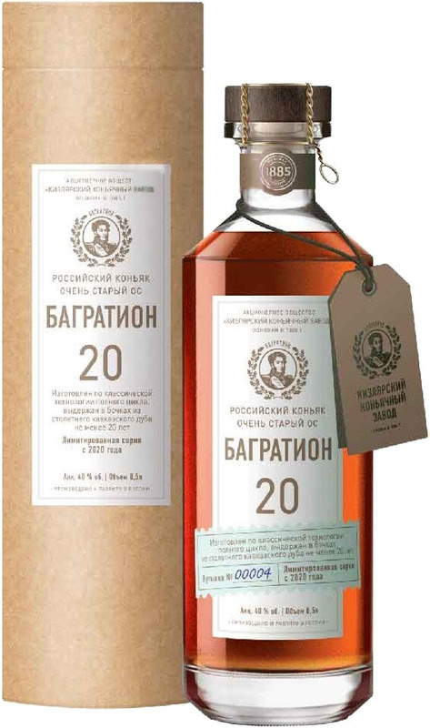 КОНЬЯК КИЗЛЯРСКИЙ ОС БАГРАТИОН 20 ЛЕТ (мюзле) 0,5 л. 40%