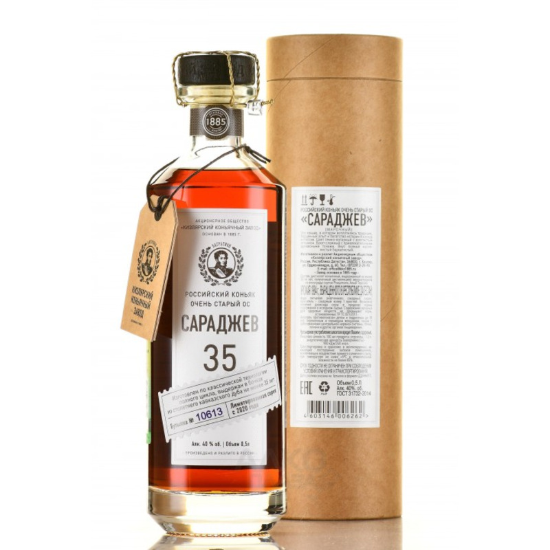 Коньяк ОС Сараджев разливается в бутылки объёмом 0,5 литра и поставляется в стильной тубе, что подчёркивает его премиальный статус. Этот благородный 35-летний напиток станет идеальным выбором для коллекционеров и ценителей редких коньяков, прекрасно сочетается с выдержанными сырами и десертами.