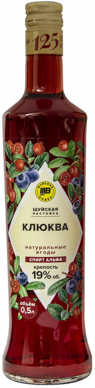 НАСТОЙКА ШУЙСКАЯ КЛЮКВЕННАЯ сладкая 0,5 л. 19%