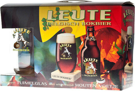 Пиво "Leute" Bokbier, gift set (3 bottles & glass), 0.33 л