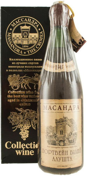 Массандра, "Коллекционное вино" Портвейн белый "Алушта", 1945, в подарочной коробке, 0.8 л