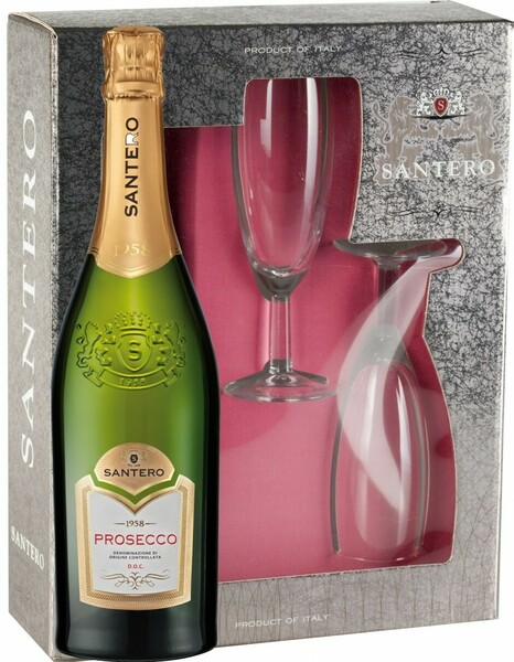 Игристое вино Santero, Prosecco DOC, gift box with 2 glasses