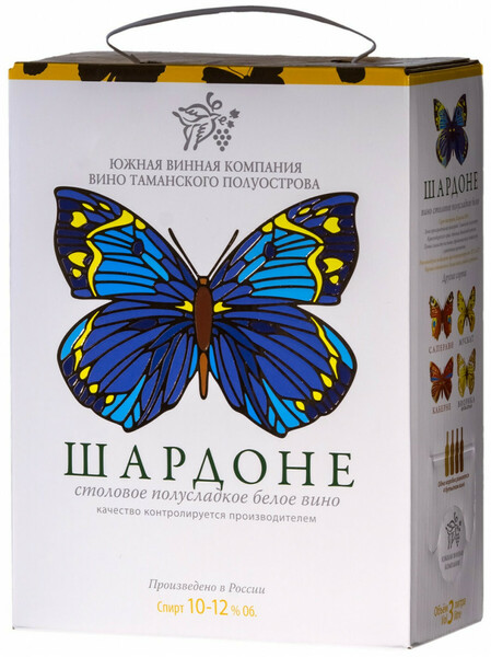 Вино ЮВК, Шардоне Полусладкое, 3 л