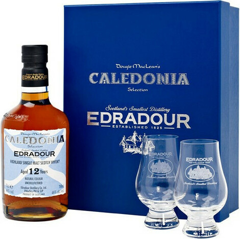 Виски Edradour, "Caledonia" 12 years old, gift box with 2 glasses, 0.7 л