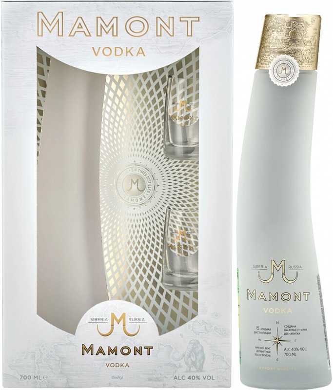 ВОДКА МАМОНТ П/У + 2 стакана 0,7л. 40%